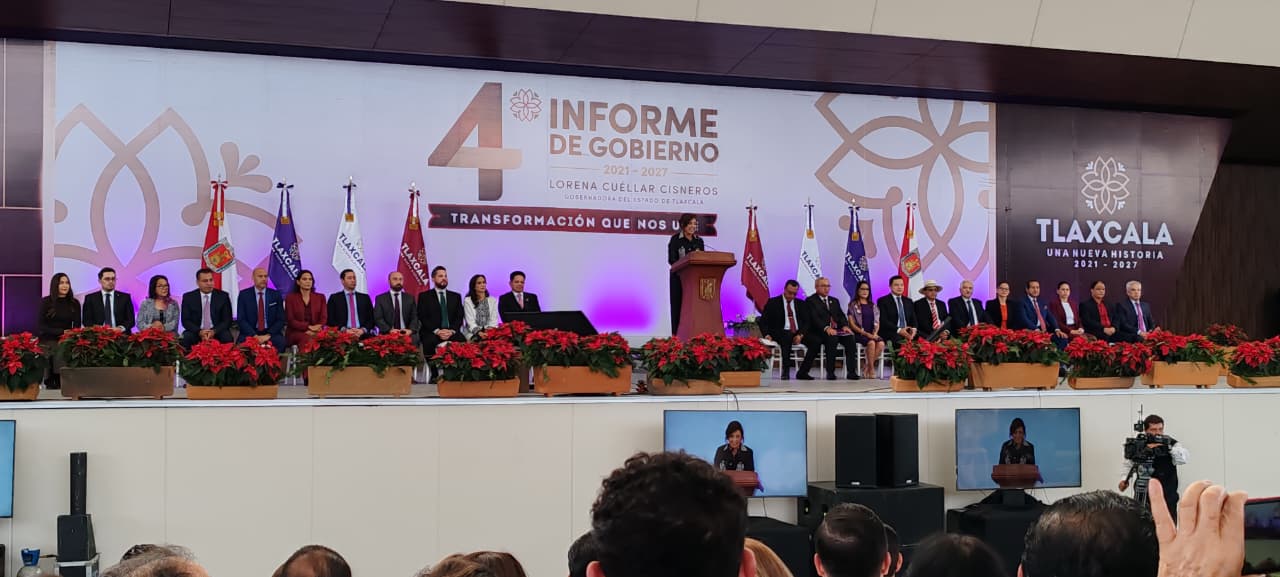 La Magistrada Presidenta del Tribunal Electoral de Tlaxcala, Esther Terova Cote, la Magistrada Claudia Salvador Angel y el Magistrado por Ministerio de Ley, Ángel Magdiel Benítez Pérez, asistieron al 4o. Informe de Gobierno de la titular del Poder Ejecutivo Lorena Cuéllar Cisneros.